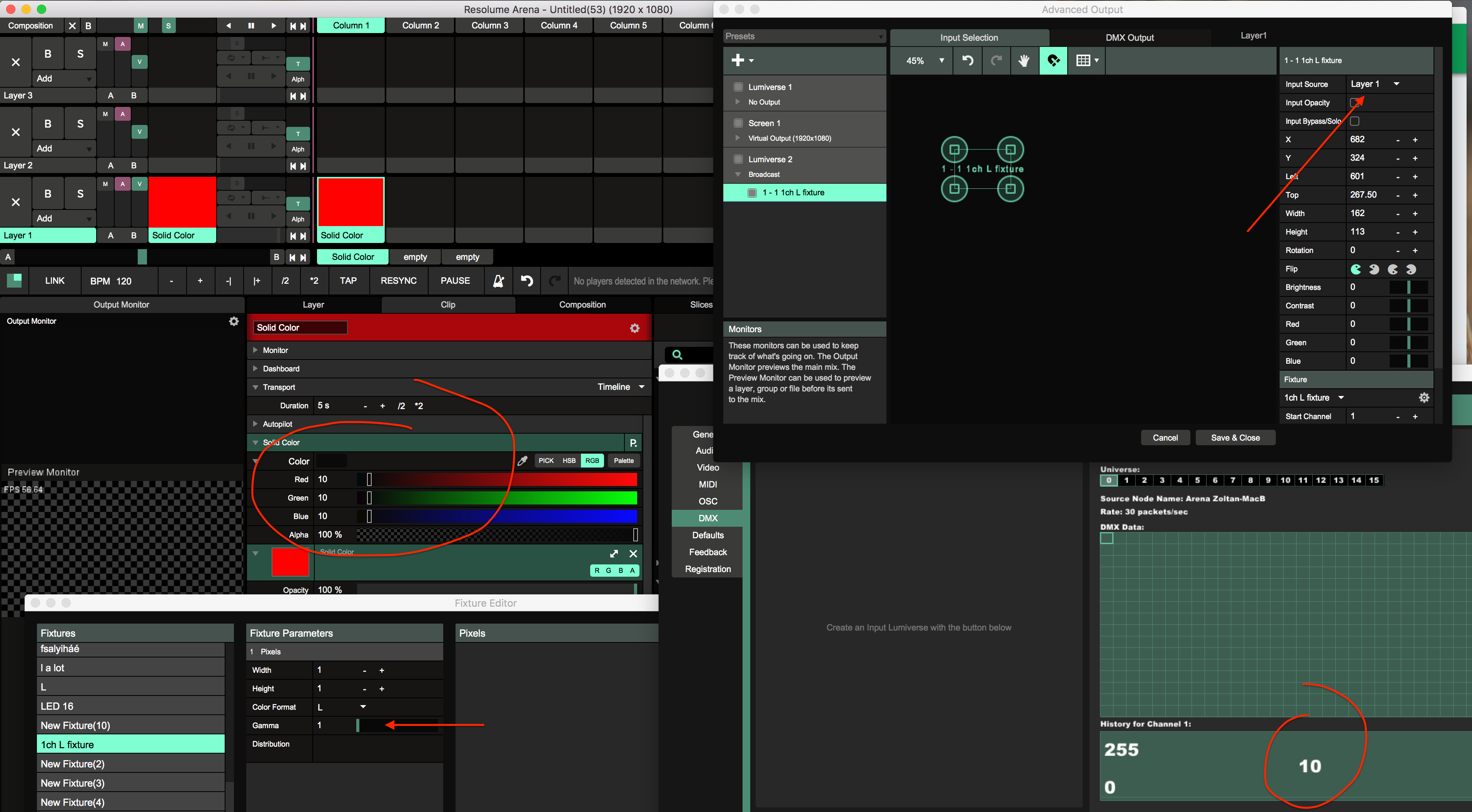 Then you can set the DMX output value, by changing the color channels to the value you want.