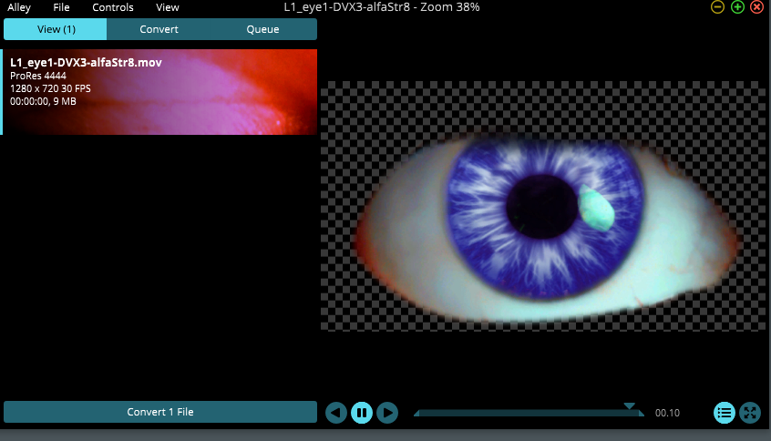 When I place directly into Resolume or Alley it Premults, leaving unwanted black RGB info around eye.