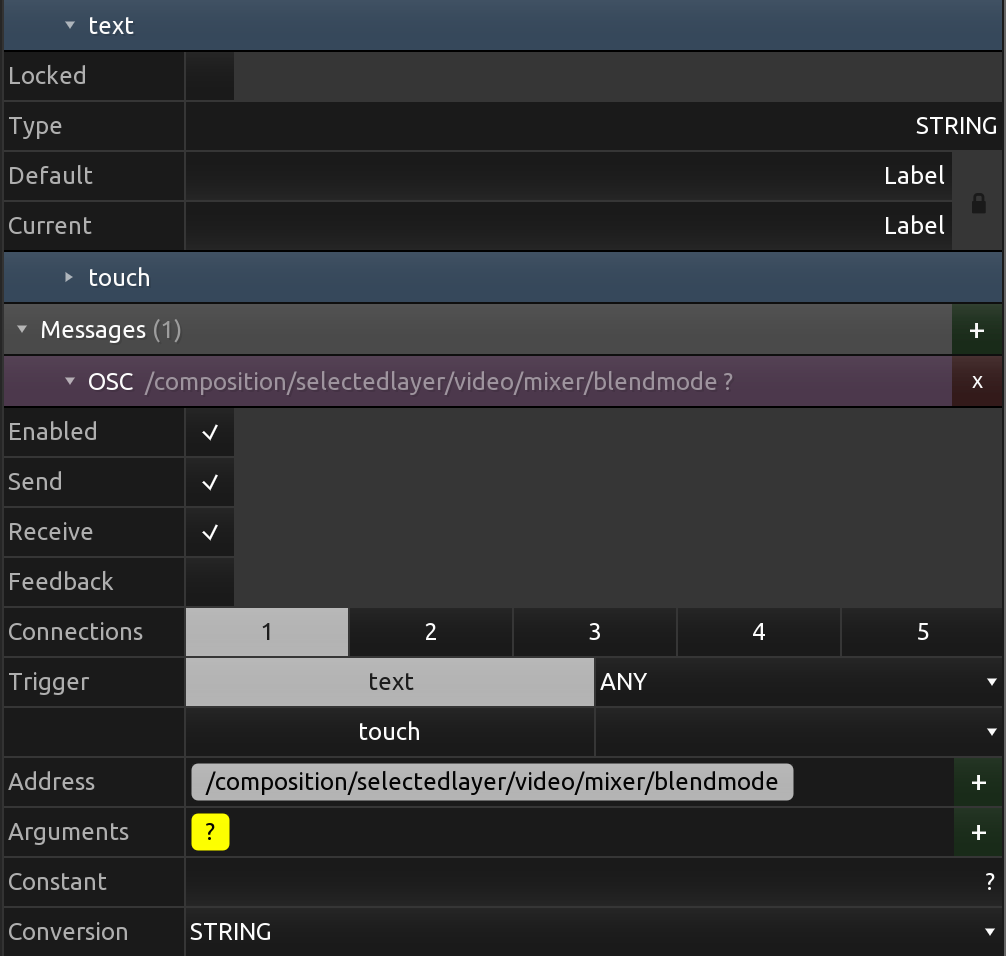 I'm trying to make a simple label in Touchosc Mk2 that can show me the name of the blend mode activated.