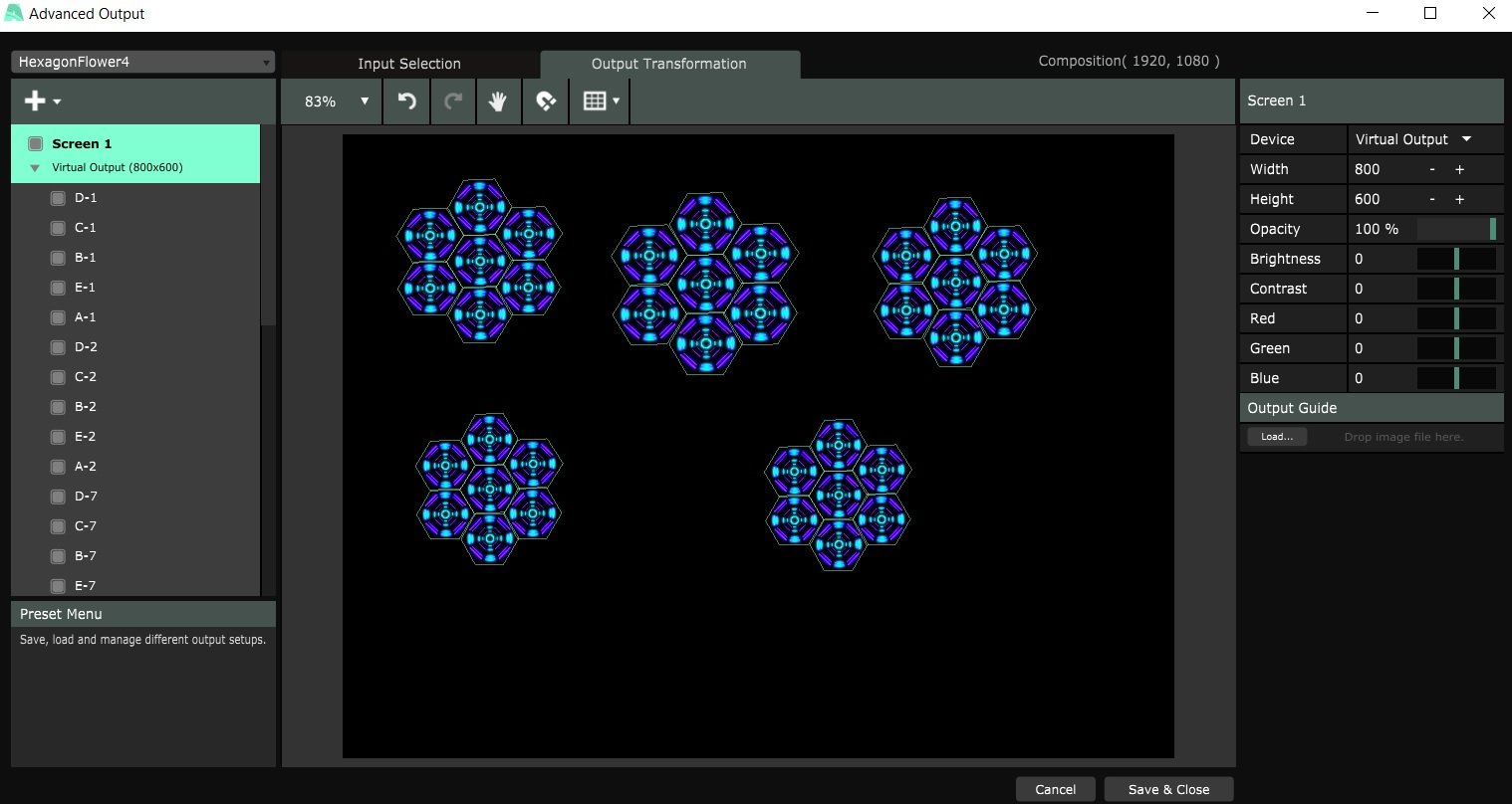 At times I will want each star to be projecting the same clip. At other times I will want each star to project different clips (or, for example, I would like each star to be a different solid color). Also, I would like to maintain separate hexagons within each star in order to use the slice transform effect (like shown in the third image below)
