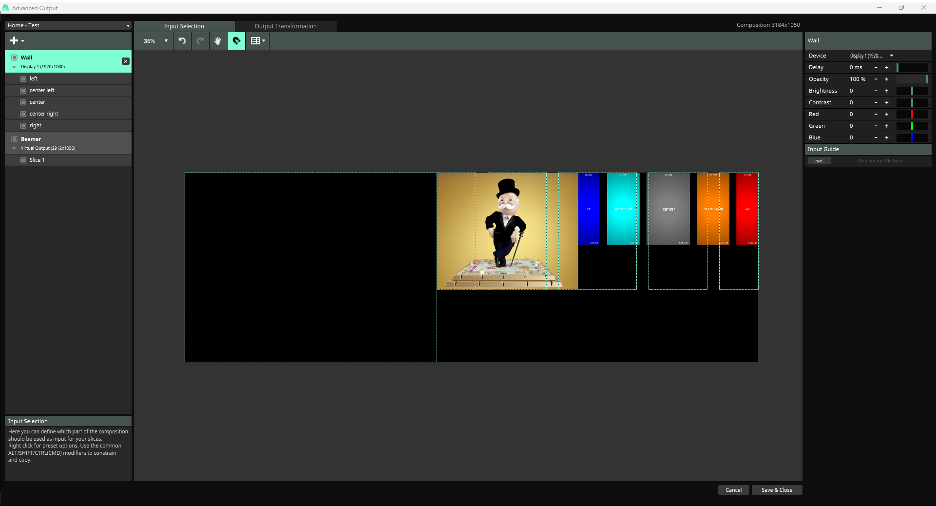I have a rig with five LED-Screens (on Stage) and a projector. I have set up slices and screen-Devices like usual on an composition. The LED-Screens should show Stage Backgrounds. For example I want to show one Image on masked on all LED-Screens (fitting). The Beamer is used to show Clips while the curtain is closed.