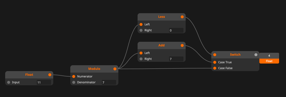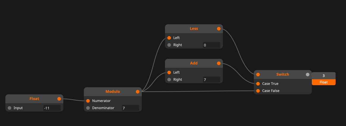 Wire Modulo Node giving incorrect value for negative inputs