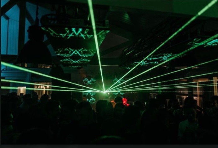 2x Panasonic PT-RZ12KU Projectors with ultrawide D75LE95 lenses for the balcony hologram Metallic Bobbinet scrim from Gerriets.