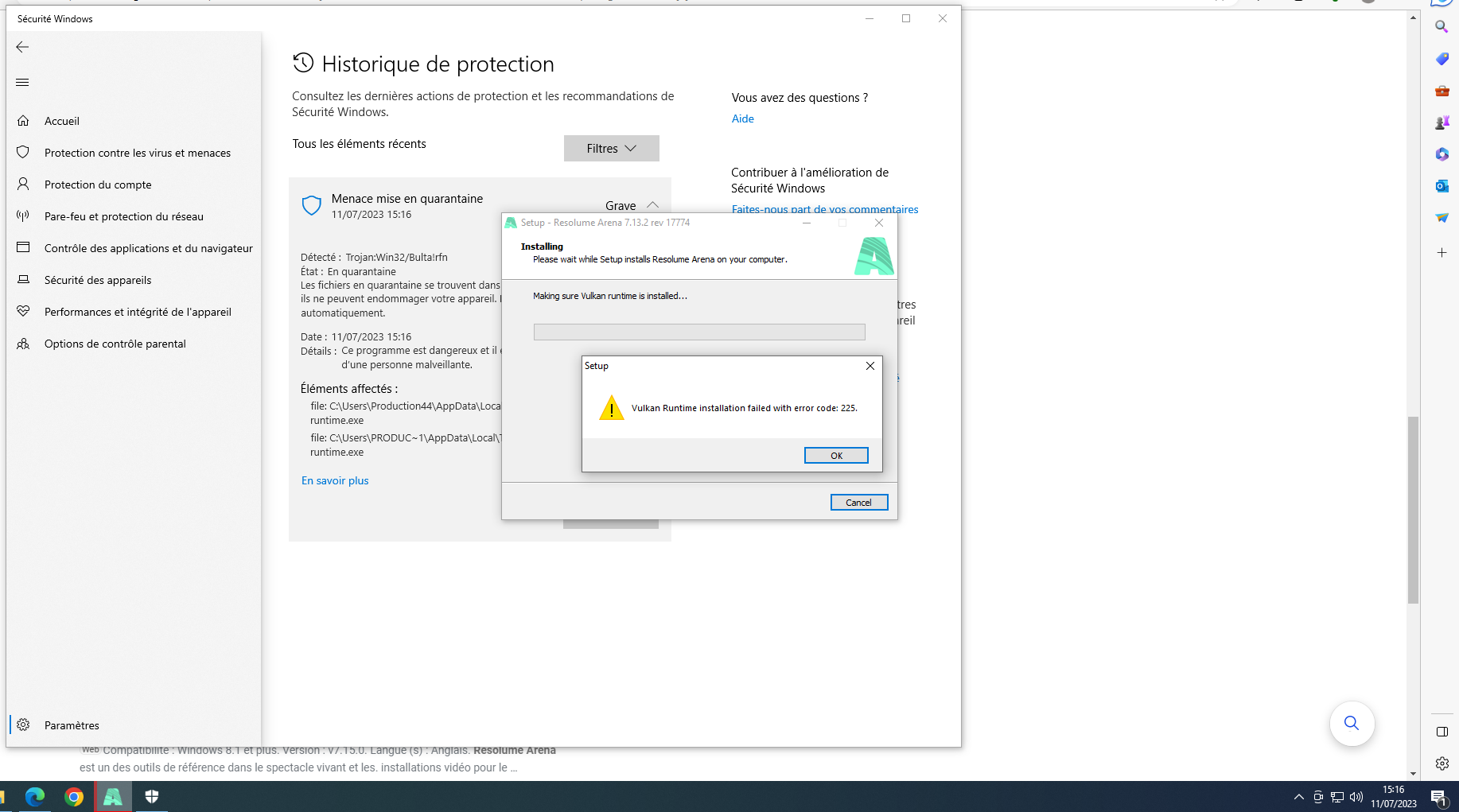 Error in the setup of Vulkan with this error and report from windows.