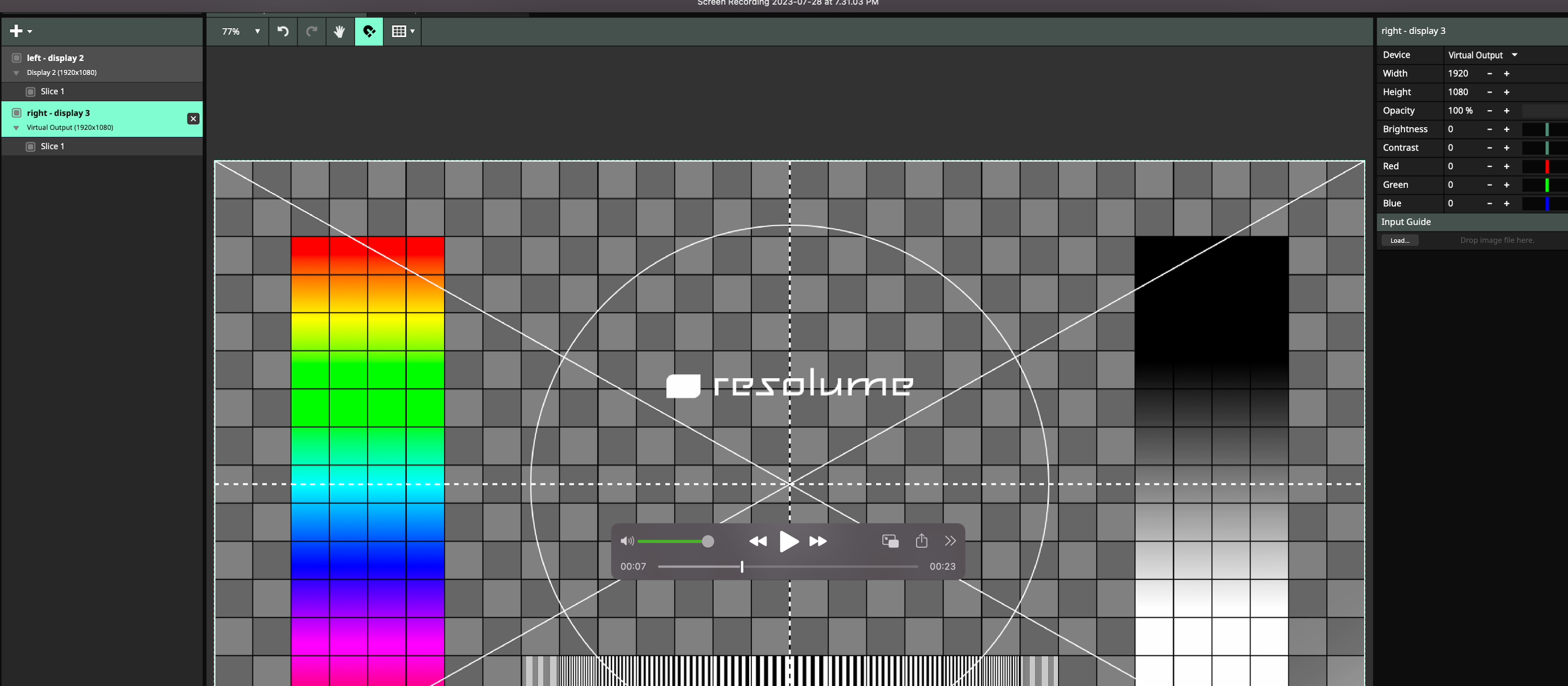 This resets my Resolume advanced output for the second screen back to “virtual output”. Only one of the projectors is able to pick back up.