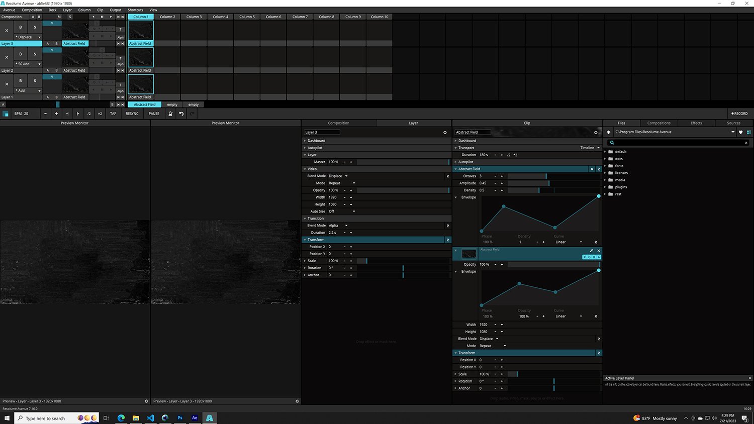 I've got envelopes on most every Resolume (7.16.0) Metaballs parameter but the Composition Monitor is not responding to them. Is there something I need to enable to get the parameters to reflect the changing values in the Envelopes? Changing the Duration settings also doesn't seem to have any impact... And the envelope I created for the Layer also is not doing anything even though when I made the changes to the parameters in the Envelope window itself the Composition monitor reflected the changes as I made them right away. I can link to a video if that would help... Thanks for any assistance.