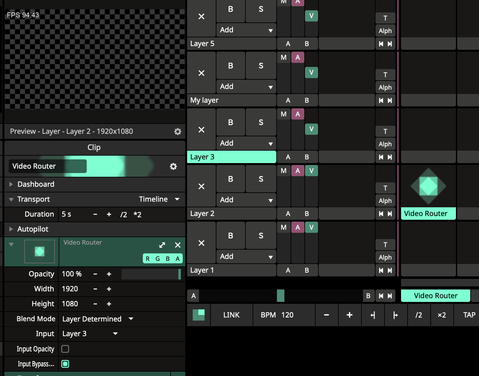As you can see, I have selected 'My layer' as the input for the Video Router.