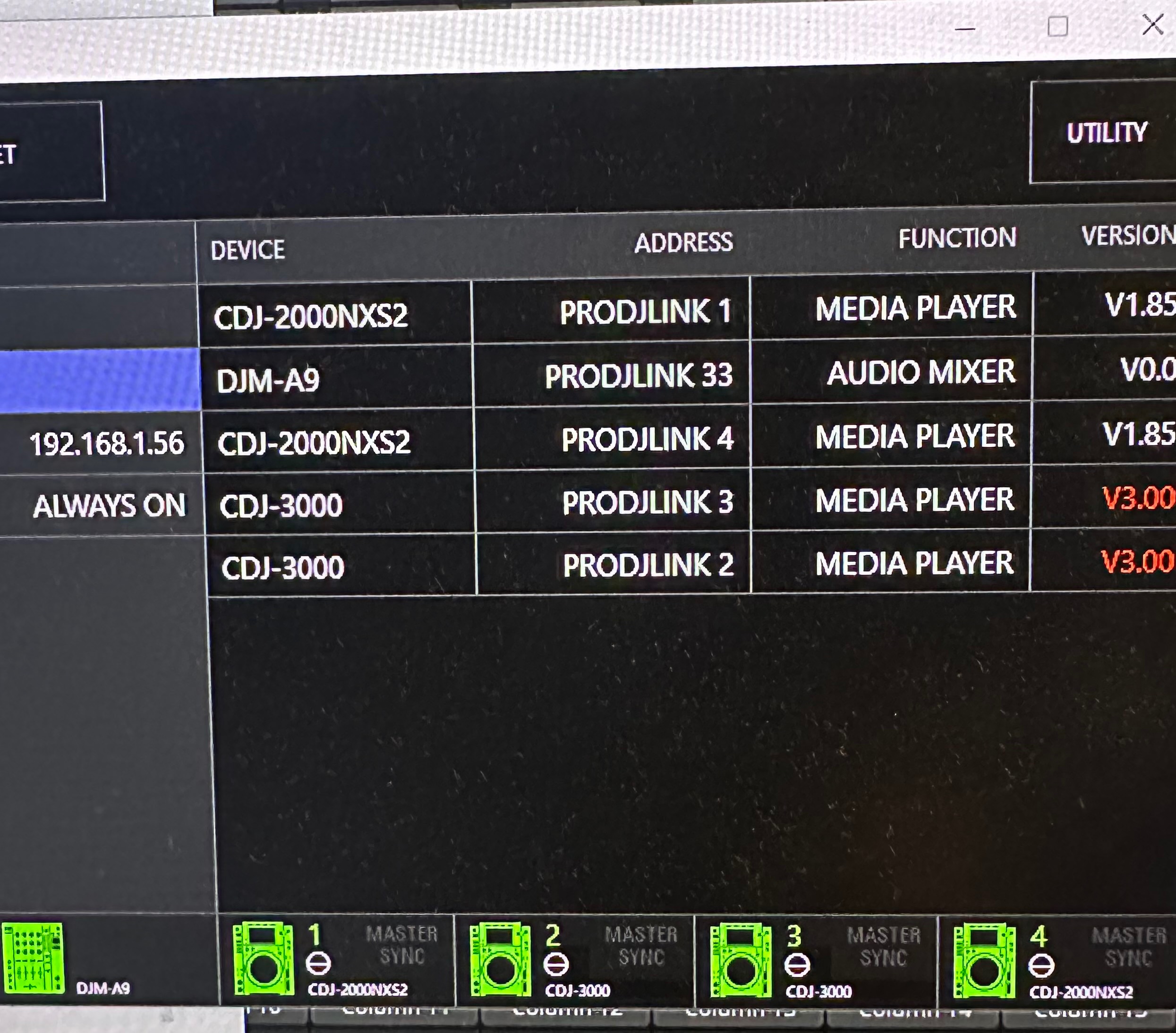 Firmware on the cdj3000 is 3.00, I have asked the tech to upgrade this firmware. The bridge app has these highlighted in red.