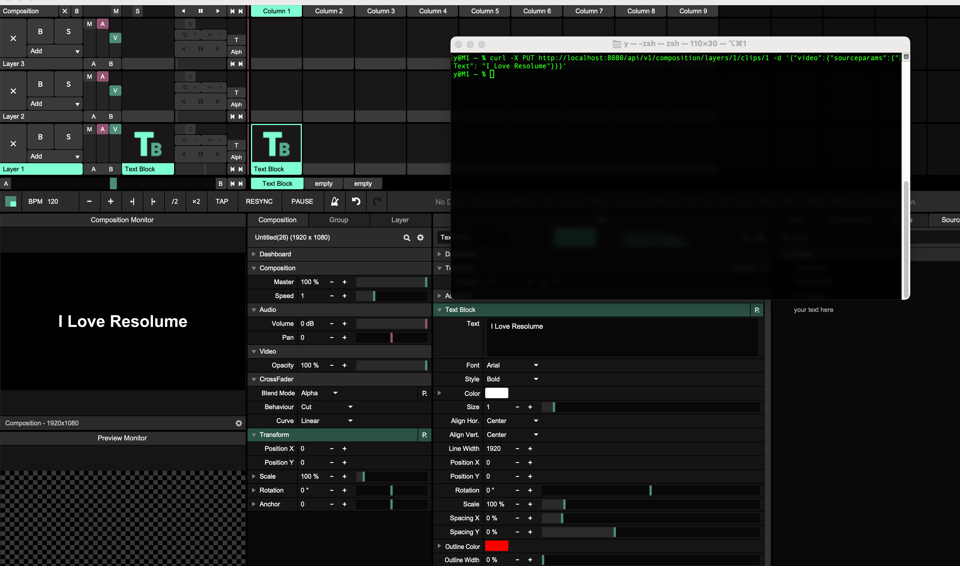 I'm a Resolume API newbie & I am struggling to change text in a Text Block via CURL.