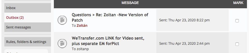 When I try to send you a new Private Message or Reply to the one you just sent, it stays in my "OUTBOX" and never goes to "SENT." Why is that?