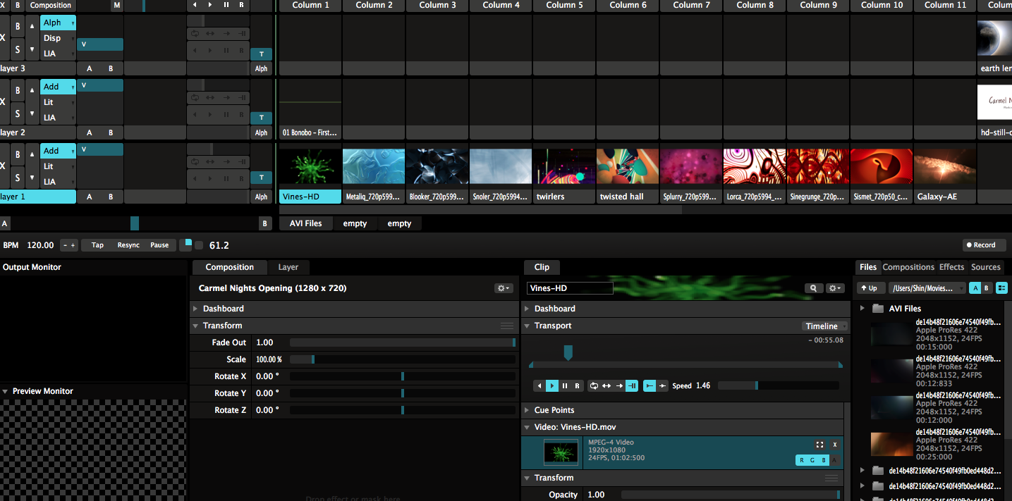 There will be a live dance performance to a 5min track and I will be projecting visuals, I need to simply be able to have the same audio playing throughout without it being modified, alongside this I want to trigger (or autopilot ) a sequence of visuals that have been placed parallel to the audio track. And for it to pretty much play as once AV sequence while giving me scope to do some video changes on the fly if i feel like modifying live but for this performance I might play it a bit more safe.