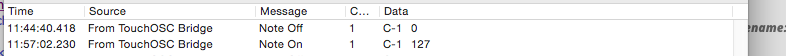 Also keep in mind that using musical designation ( ie C-1 ) for midi notes is just a convention, and different softwares set their middle C on a different note. It could very well be that TouchOSC C-1 does not match Resolume's C-1.