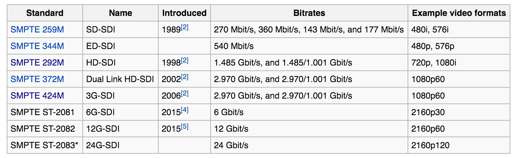 Current SDI SMPTE standards are and anything above 3G-SDI is still mostly unchartered territory: