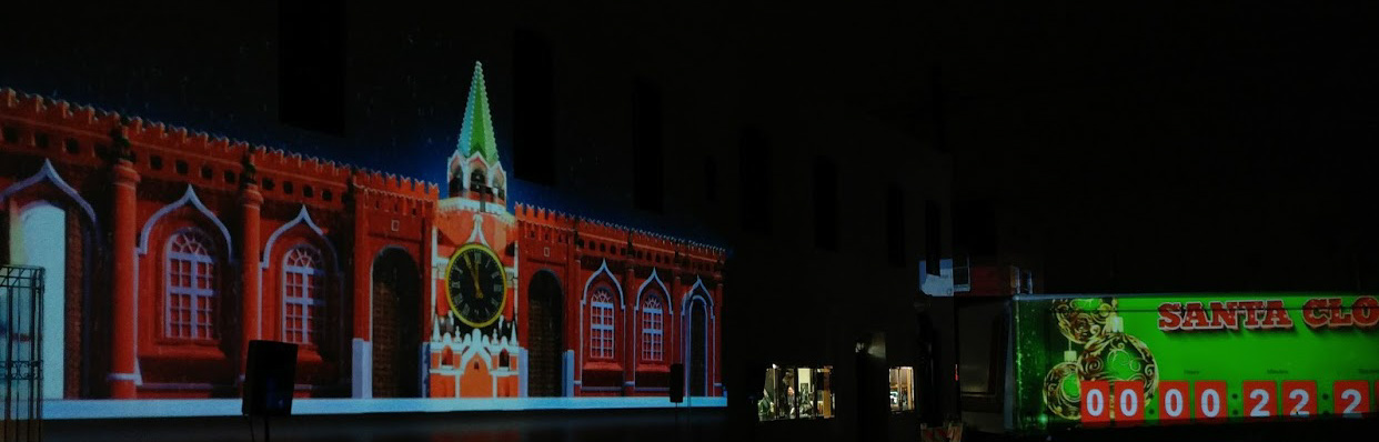 I'd be more concerned about using 3 old 12K XGA projectors on that size of a building especially if the building is not white. We own a few Eiki LC-XT4 and these would definitely not be my first choice for this type of application but if that's all you can get your hands on you can make it work.