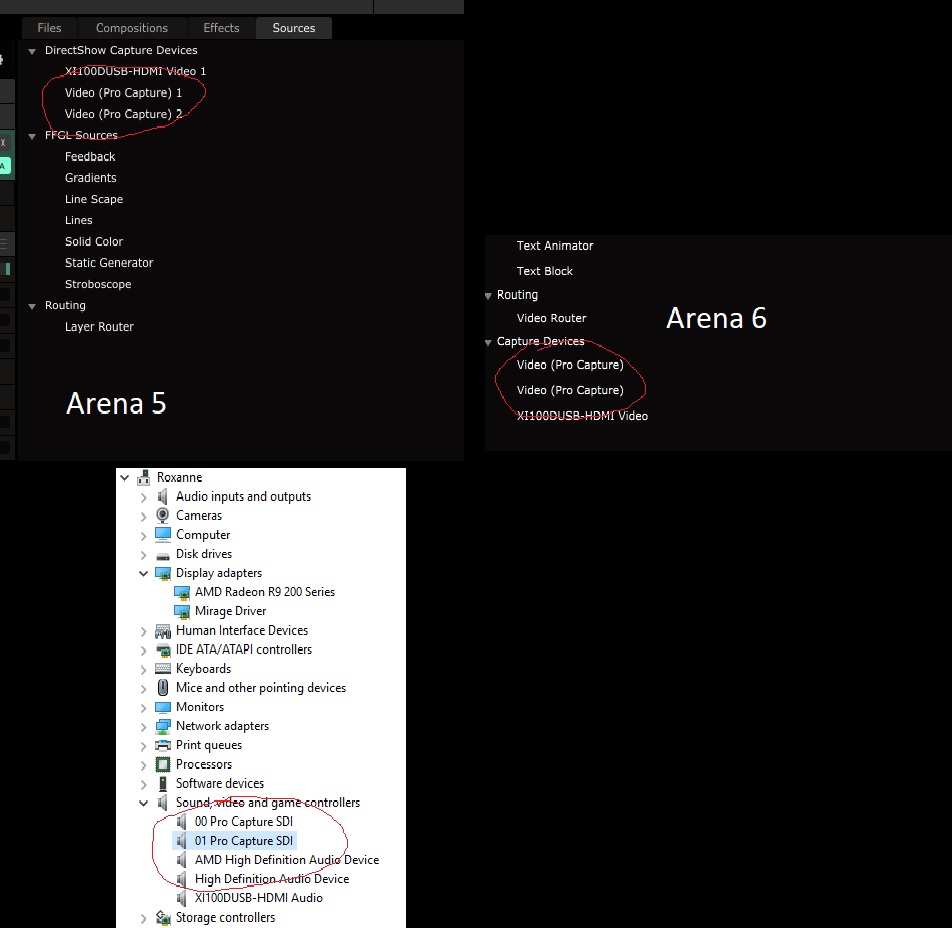 In Resolume Arena 5 these two cards show up as seperate cards.