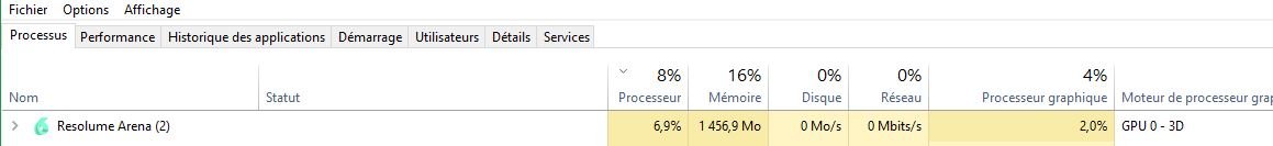 The CPU is cold, the graphics card does not work any more than when starting Resolume. The memory is empty.