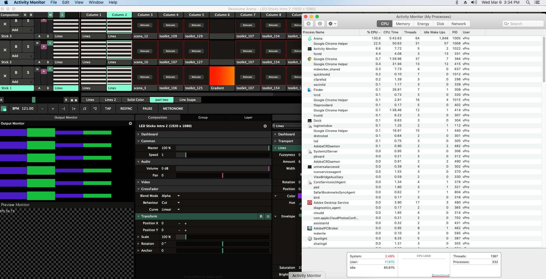 Check that Resolume is using the dedicated GPU as renderer, by enabling Show Display Info in the Output menu.