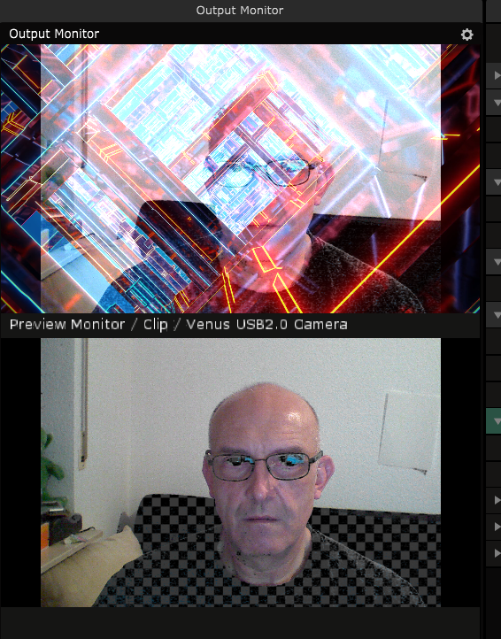 You may can post a screenshot of the whole gui with the 2 clips playing and the preview (cam) and the main out (both)