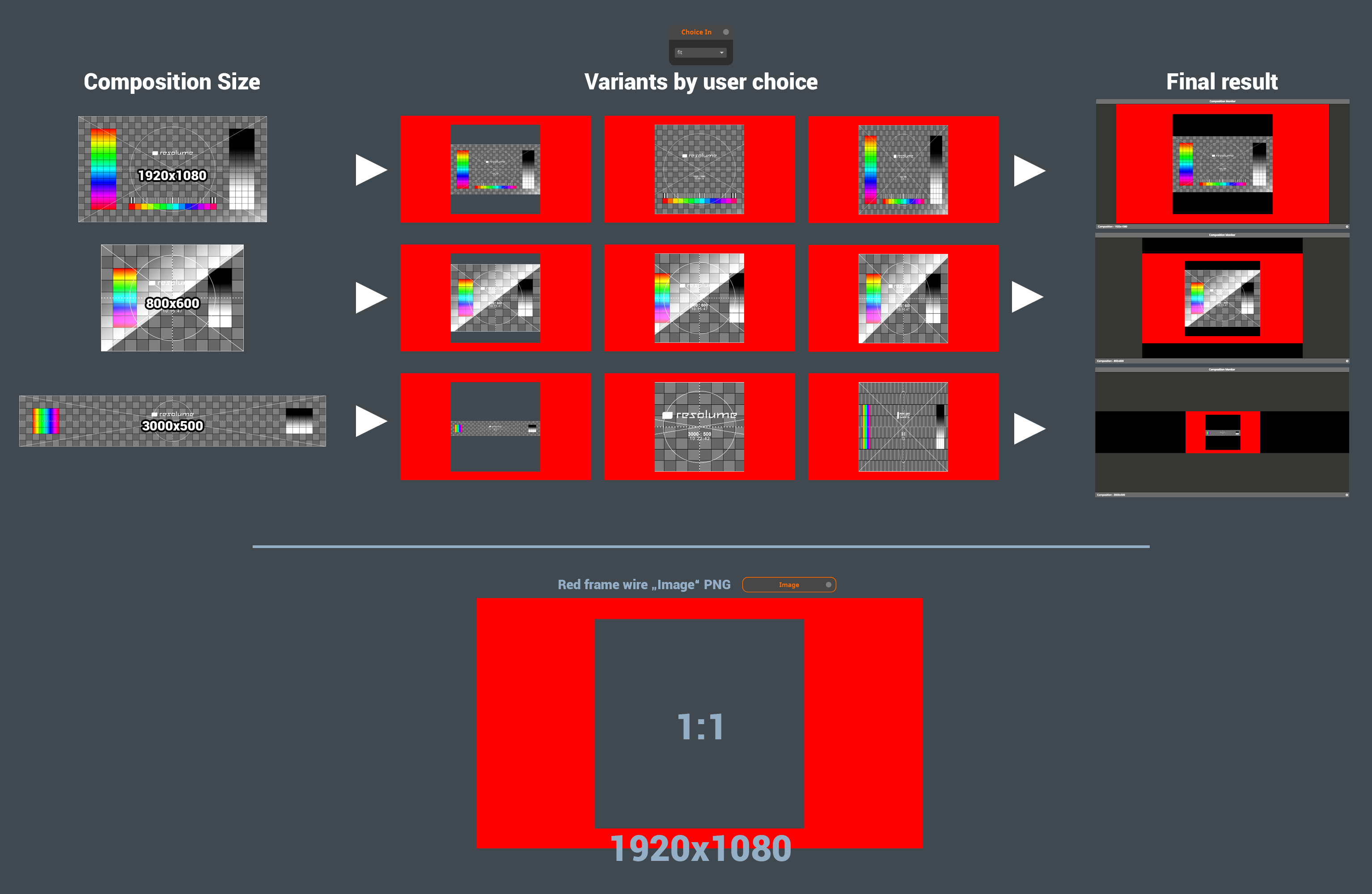 Resolume should take everything and scale it into this frame. This seems to work fine with a comp size of 1920x1080...but with a comp size for example 5000x1080 the image stretches over the borders of the png frame when the Resolume layer properties are set to "fill" or "stretch"