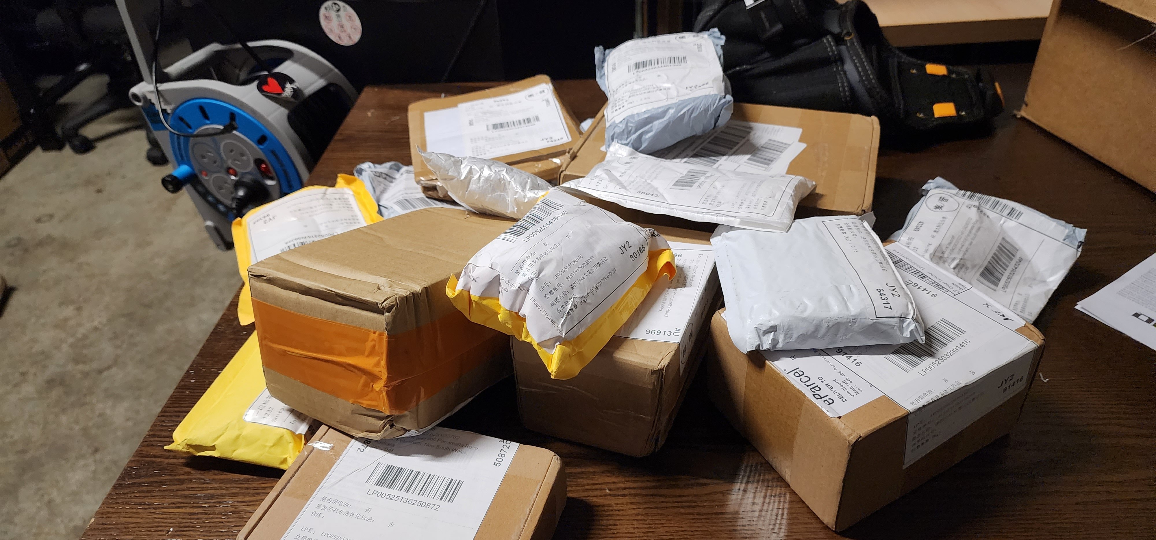 At workshop where I have a stuck of different parts and components to test, from china and Germany.