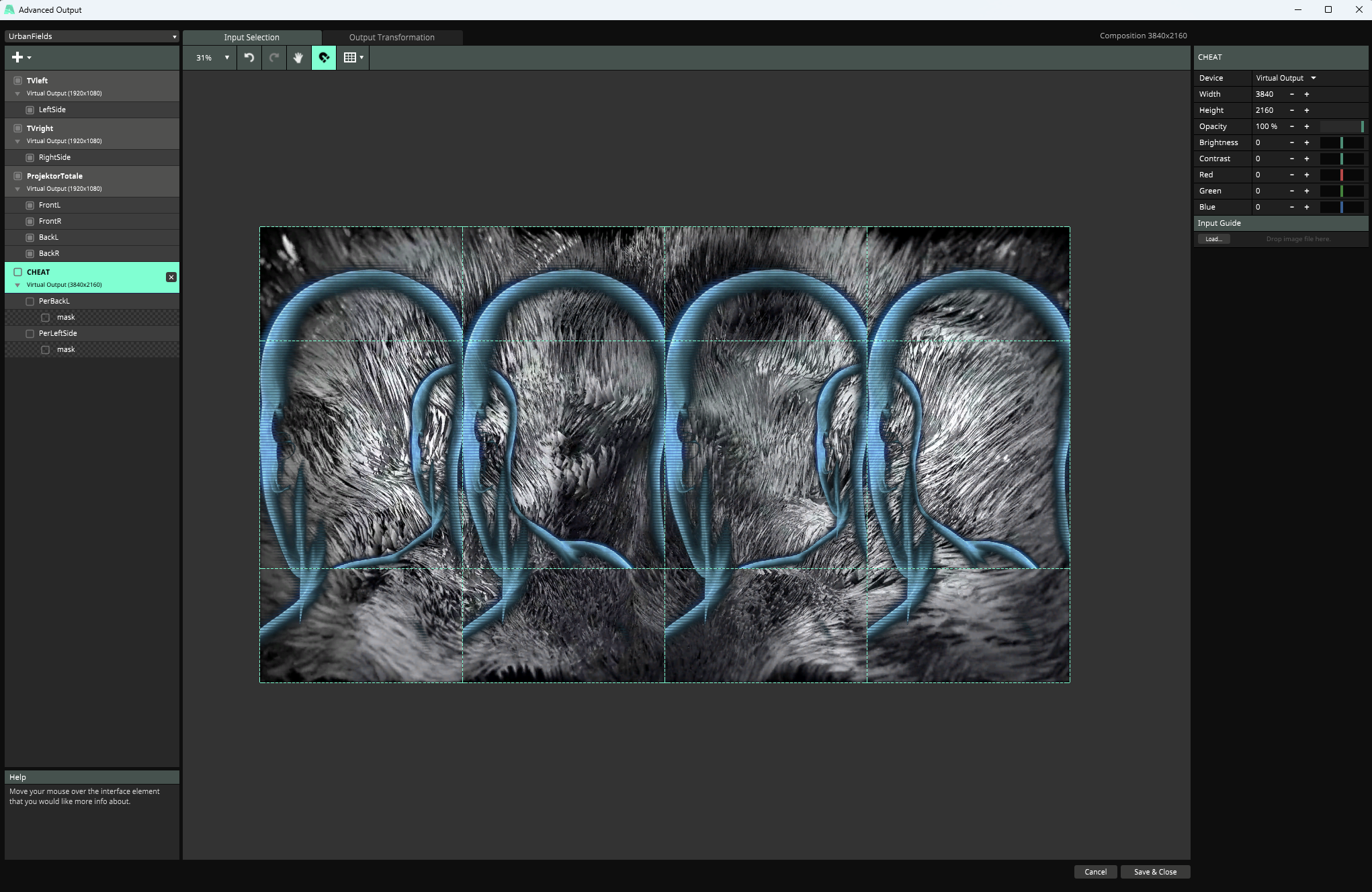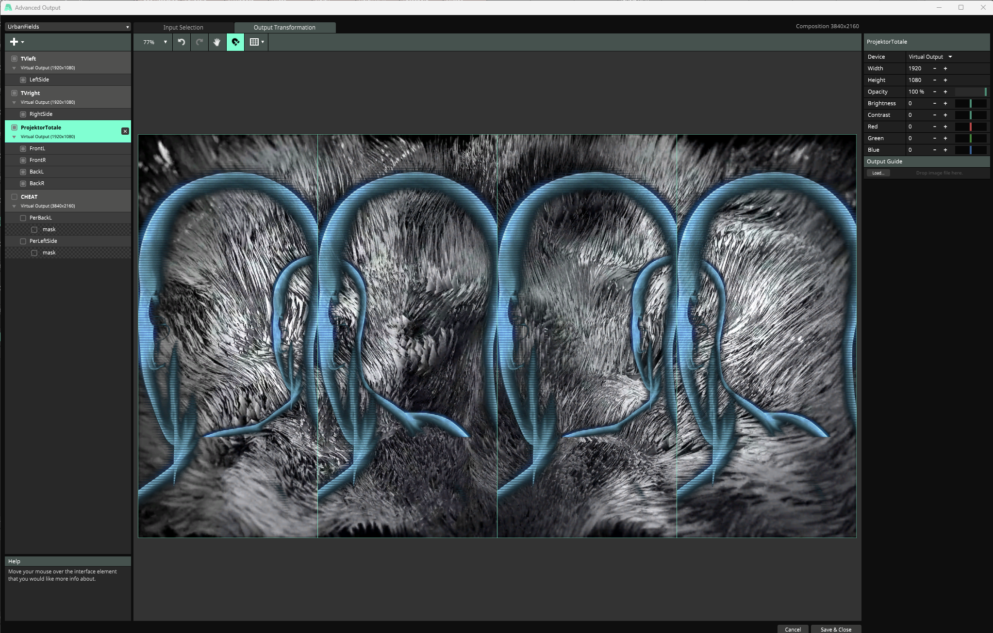 I have a complex LED panel deployment with 6 HD outputs routed to 6 pixel processors. So far we've been using one HD composition to drive the show. Venue has a main upstage screen, dj booth, other LED panels all over the place, etc. In the advanced output we obviously output map to 6 separate HD feeds, however our input map is derived from the composition (used for the main upstage screen) with a lot (like a LOT) of slice overlaps. This is great because comp level effects work across all slices.