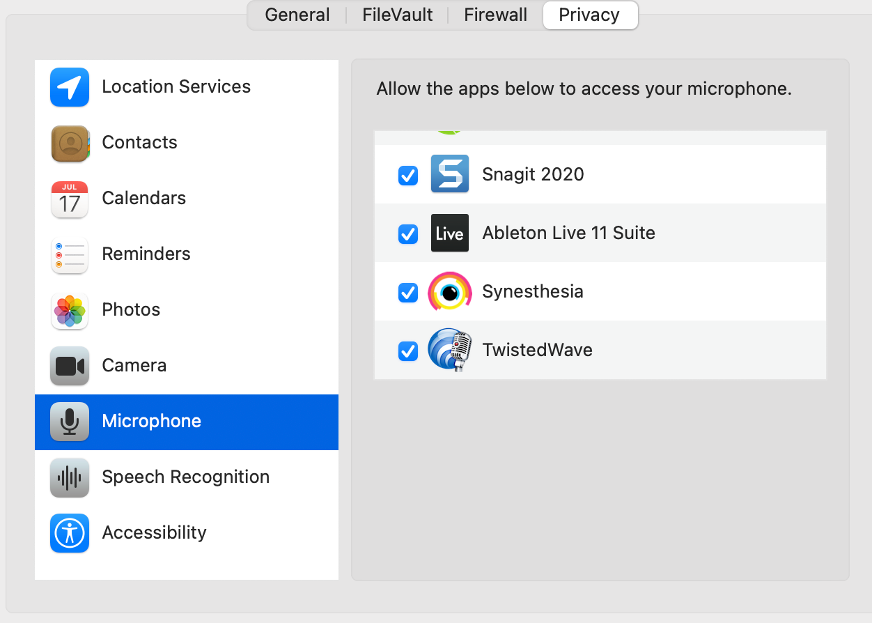 I checked the privacy setting for Microphone and Avenue does not show up as an option.