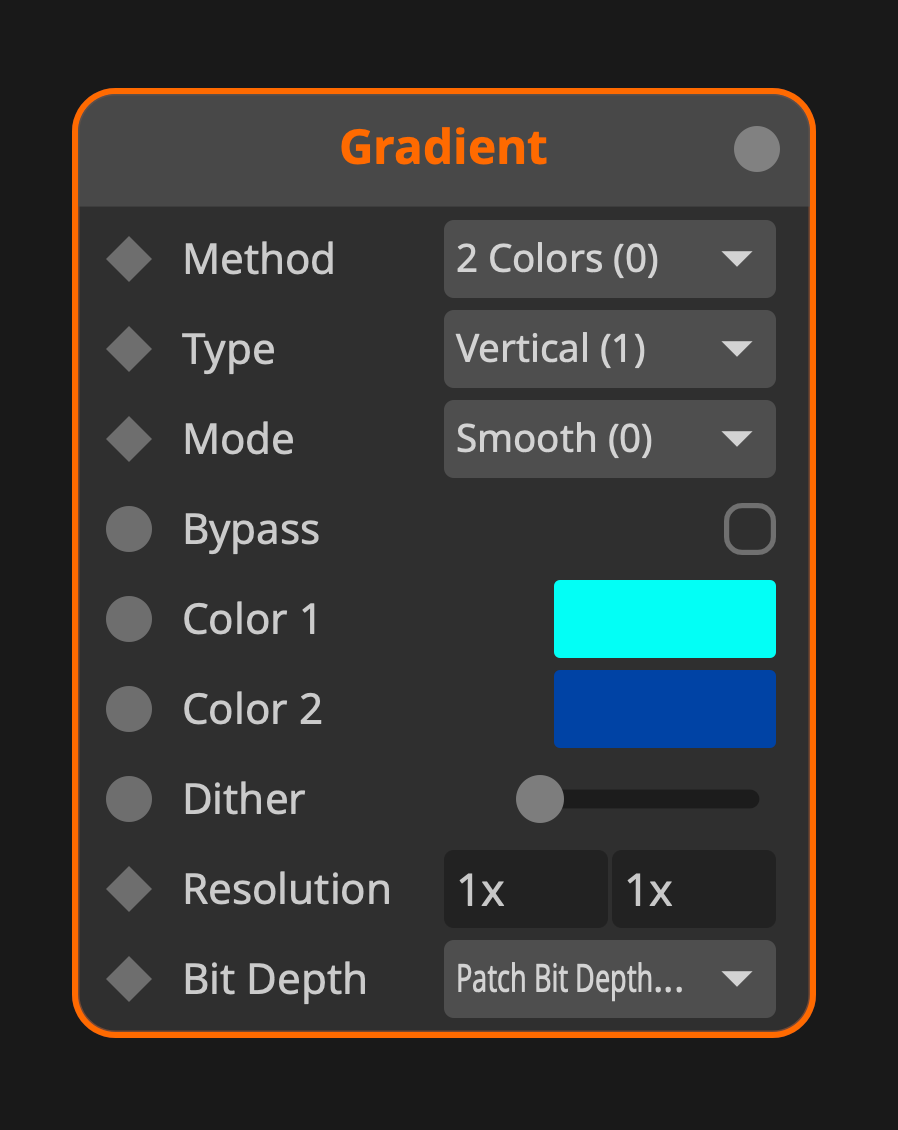 If you haven't already (I don't have the latest Wire version) could you please expose the 'type' as a drivable inlet (pin/port) on Gradient, so one can easily choose between Horizontal, Vertical, Radial, Angular.