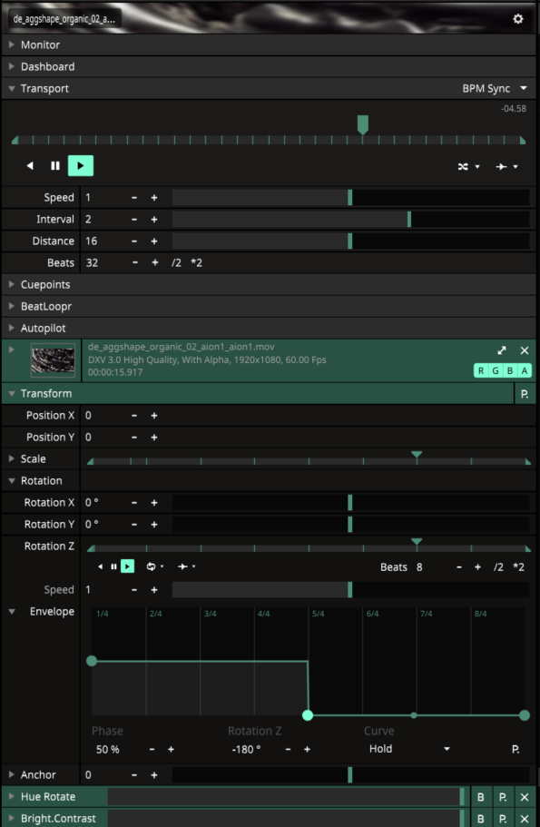 I have a problem with the combination of random playback of the clip on BPM sync and effects that also run on BPM sync. The position of the timeline is always shifted one frame earlier before the effect is applied resulting in an unclean picture between the transition. I work with step envelopes for the effects. Please find attached a screenshot of my clip settings.