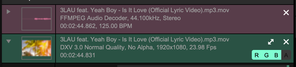 Showing the clip file size in this spot would really help me keep a tab on how much space everything's taking up in place while I'm designing, so for instance I can trim a DXV clip a little closer to save a few GB here and there, or I can optimize just the assets that make a multi-layered effect (I notice that in certain situations very large images can slow things down - I do all my work in 4K - and more compression helps).