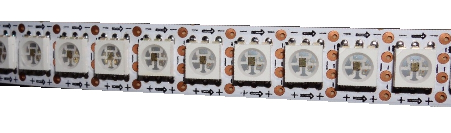 这款像素灯是相对便宜及容易购买的点控像素灯。它们最大的传输频率会到800Khz,但在大型装置使用时,就会变成一个限制的因素。特别是在你的控制设备需要传输资料到一个非常长的串联像素灯时。