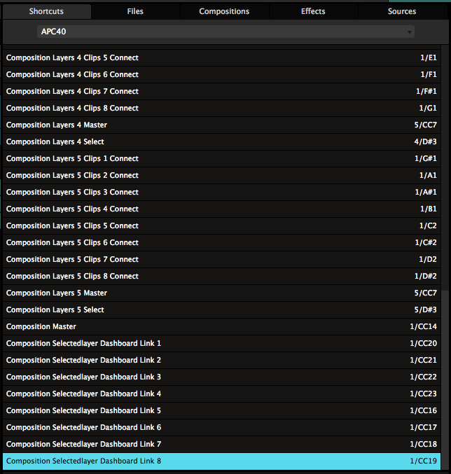 例如,图层的快捷键预设是以位置。因为你可能永远想MIDI上的第一个淡出入器去控制你合成中的第一个图层,无论你之後怎样调整图层次序。